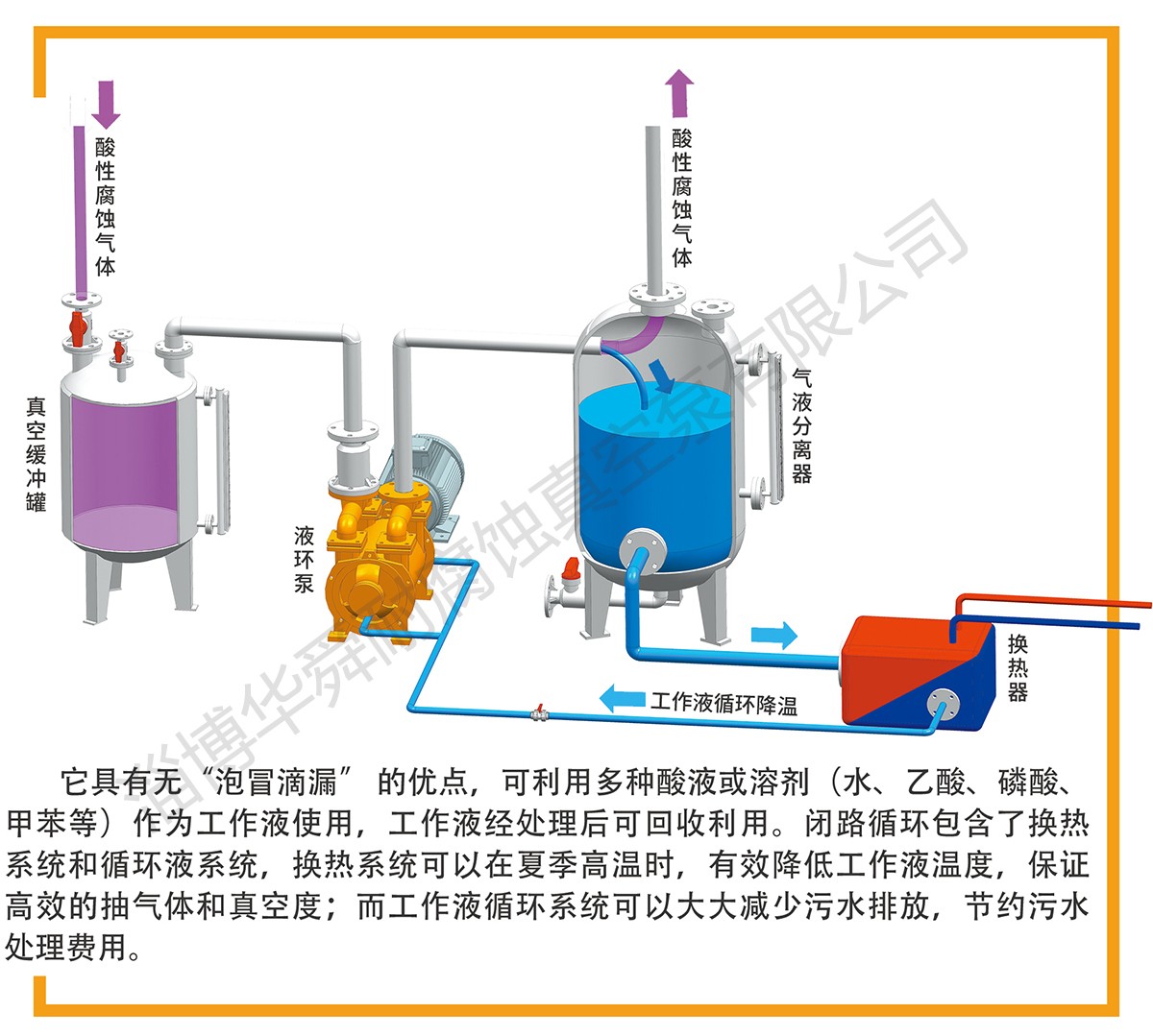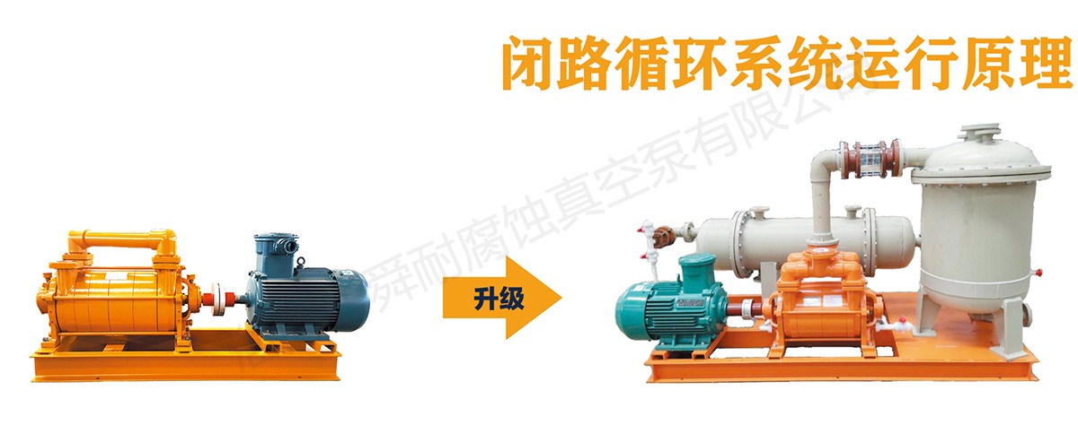 耐腐蝕液環泵可以升級為閉路循環系統,它由FSK系列、F2SK系列、F2BV系列、F2BE系列和JZJFS羅 茨泵系列,與真空換緩沖罐、汽液分離器、換熱器、連接管路等串聯組成。閉路循環與用戶DCS連接可實現自動控制。